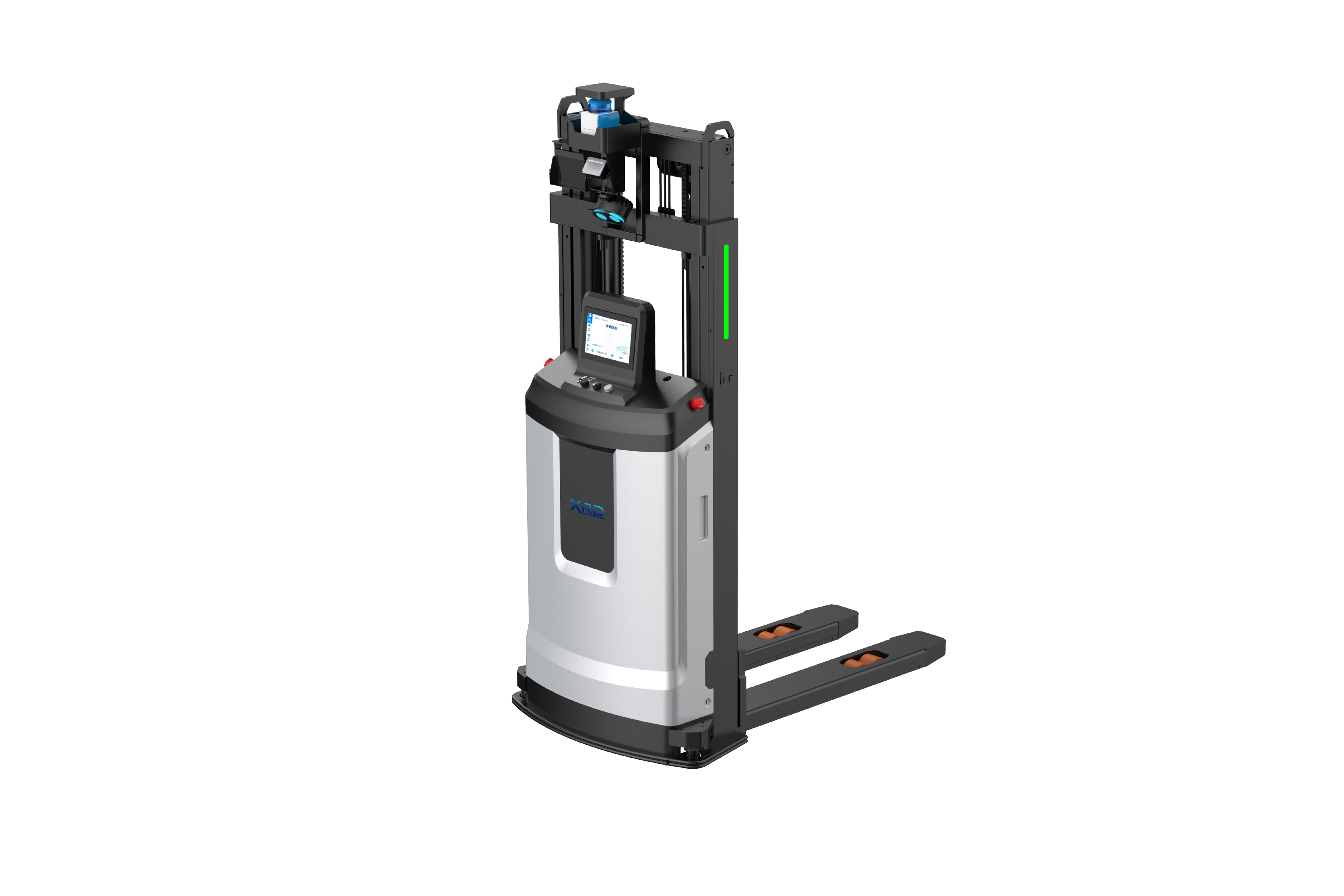 The forklift AMR is based on the design of the special forklift truck body, which realizes the handling from 1T to 3T, and the stacking height from 1 m to 4.5 m. It has the features of narrow channel pickup and release, intelligent sensing autonomous pallet identification, high-precision laser SLAM navigation, 360° stereoscopic safety detection, etc. Used in automobile, new energy, 3C and other industries of cargo transport and stacking business.